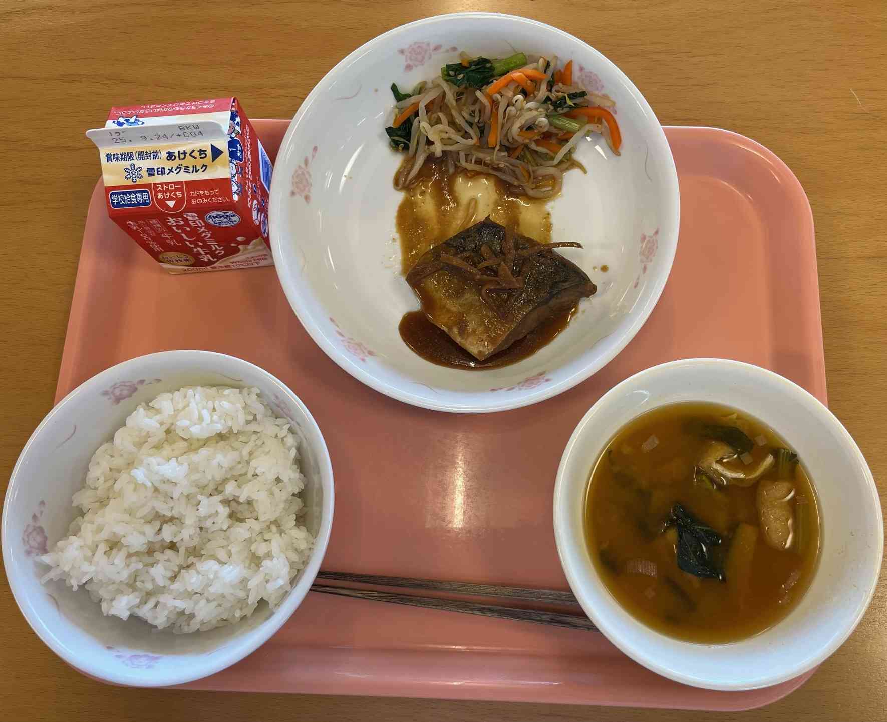 ・牛乳 ・ご飯 ・さばの味噌煮 ・三色和え ・味噌汁